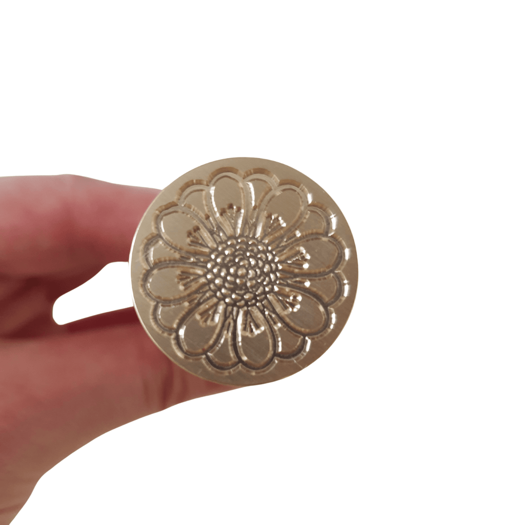 Flower bloom wax sealing stamp for DIY wax seals. Featured design is engraved on to a 25mm round shaped brass stamp head. Comes with handle.