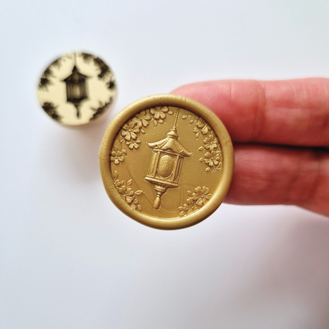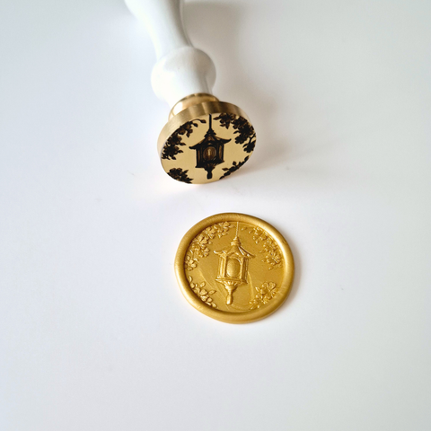 Detailed Lantern wax sealing stamp for DIY wax seals. Featured design is engraved on to a 25mm round brass stamp head with a deep and detailed impression.