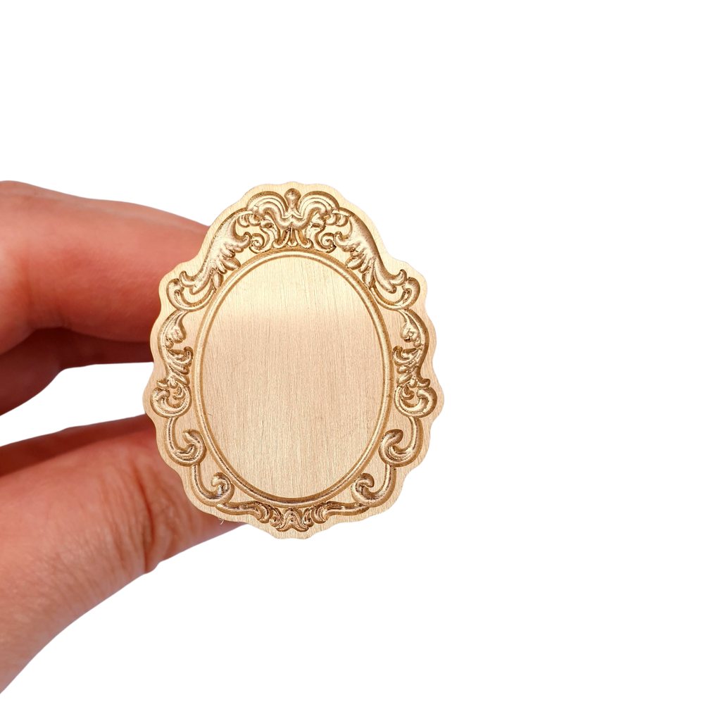 Create timeless, elegant wax seals with this beautifully detailed Oval Frame Wax Seal Stamp. Featuring an intricate baroque-style border with decorative scrollwork, this design forms a refined oval frame with a blank center, perfect for adding your own creative flare to the centre.