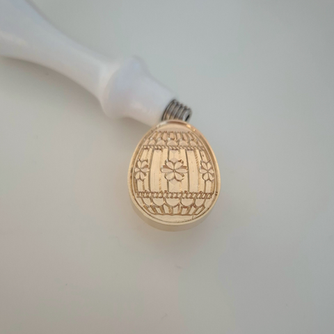 Egg shaped Easter wax sealing stamp for DIY wax seals. Featured wax stamp design is engraved on to an oval brass stamp head with detailed impression.